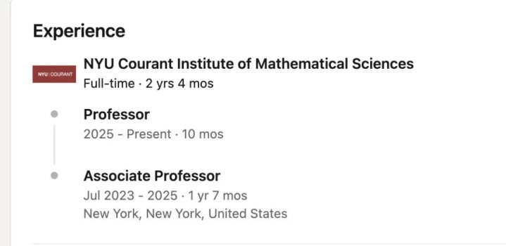 2023年,她被纽约大学科朗数学研究所聘为副教授,今年刚刚晋升为正教授。